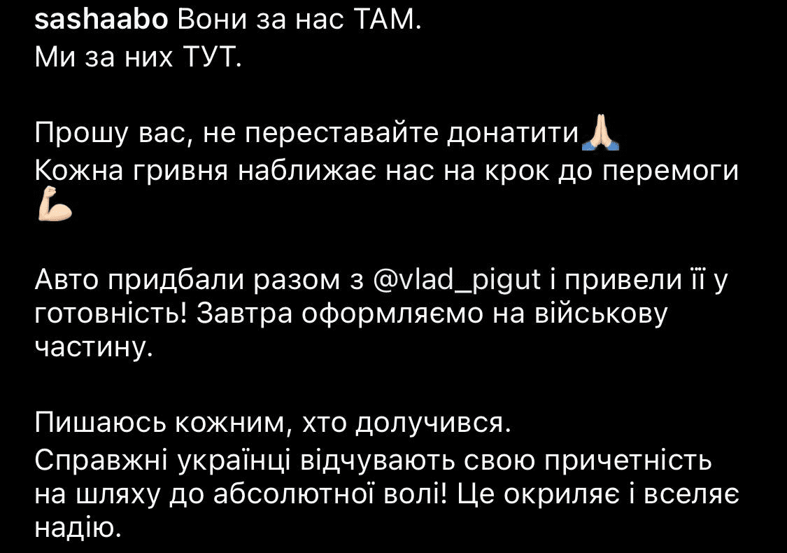 Это первый украиноязычный блоггер-миллионник. Александра всегда распространяла все украинское, в том числе язык, тем самым поощряла свою миллионную аудиторию к этому. С начала войны Александра в своем инстаграмме часто объявляла о сборах денег на автомобили, сборах для людей, которые вынуждены были искать безопасное место именно во Франковске.