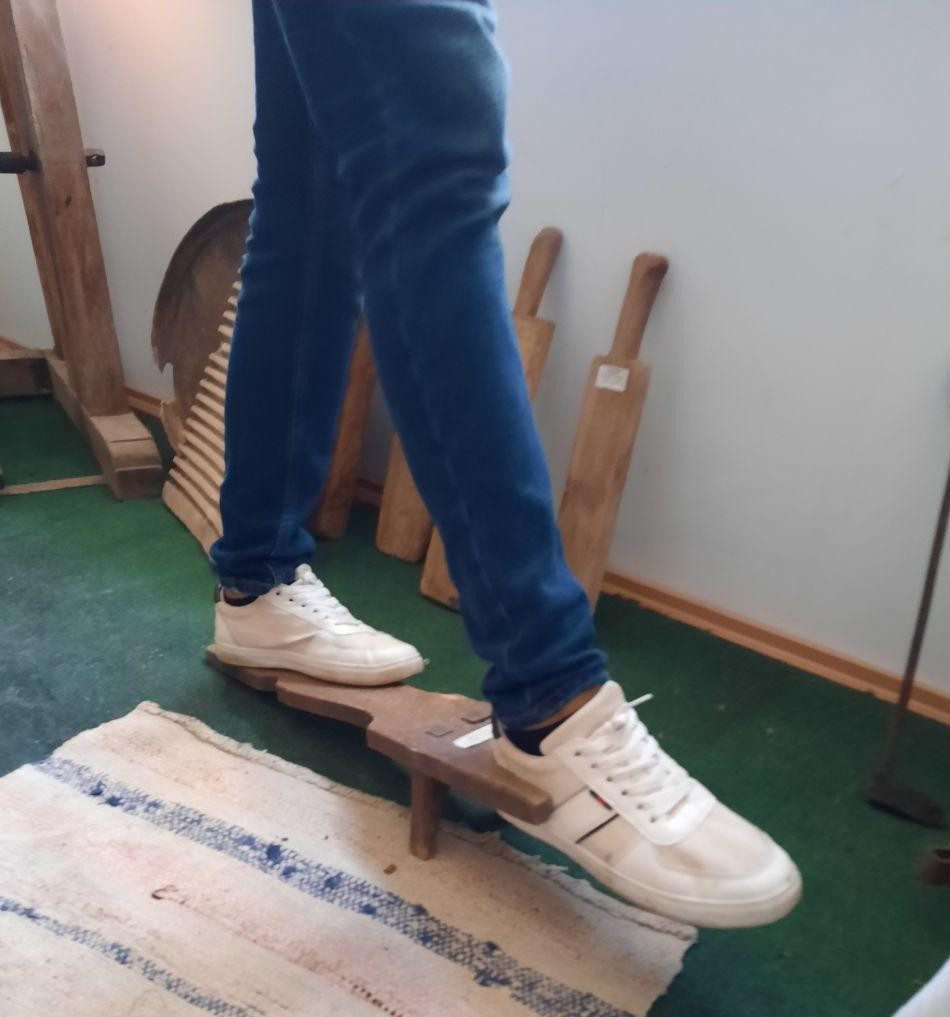 Наступний експонат – ткацький станок, якому близько 200 років. Ця  річ дуже зацікавлює найменших відвідувачів музею. Щоправда, деякі деталі ткацького станка замінили, але загалом система залишилась оригінальною.
