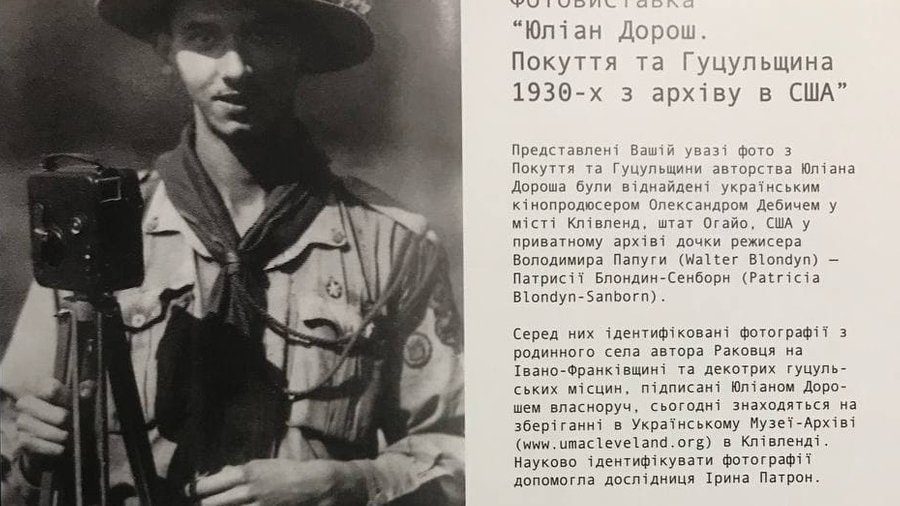 Христина Буній, яка є співавторкою виставки «Юліан Дорош. Покуття та Гуцульщина 1930-х з архіву в США», ділиться, що представлені на виставці фотографії про гуцулів раніше зберігалися у дочки режисера Уолтера Блондиненка в місті Клівленд, що в Сполучених Штатах Америки.